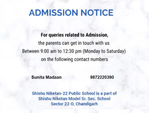 Shishu Niketan-22 Public School is a branch of, SHISHU NIKETAN MODEL SENIOR SECONDARY SCHOOL, SECTOR 22-D, CHANDIGARH, which came into existence in the year 1953 as the first private school of Chandigarh and the auspicious beginning so made, today proclaims its momentous accomplishments in academic as well as non- academic fields.